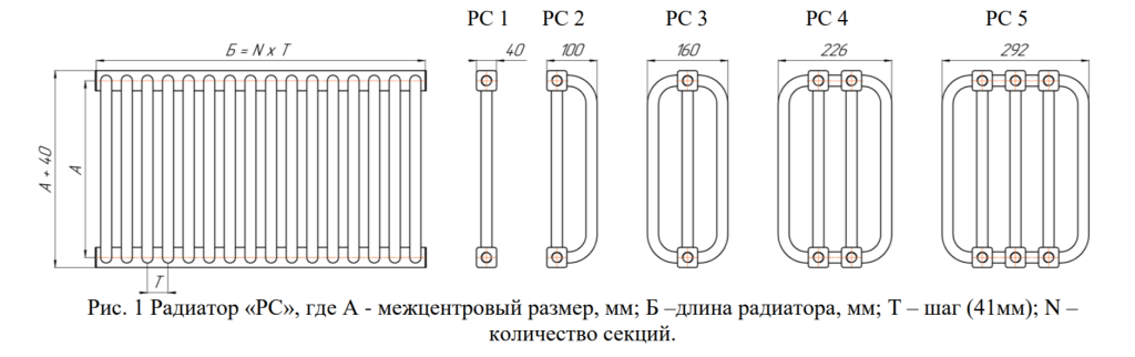 2.1. Основные габариты и параметры радиаторов представлены на рисунке 1 и в таблице технических характеристик.