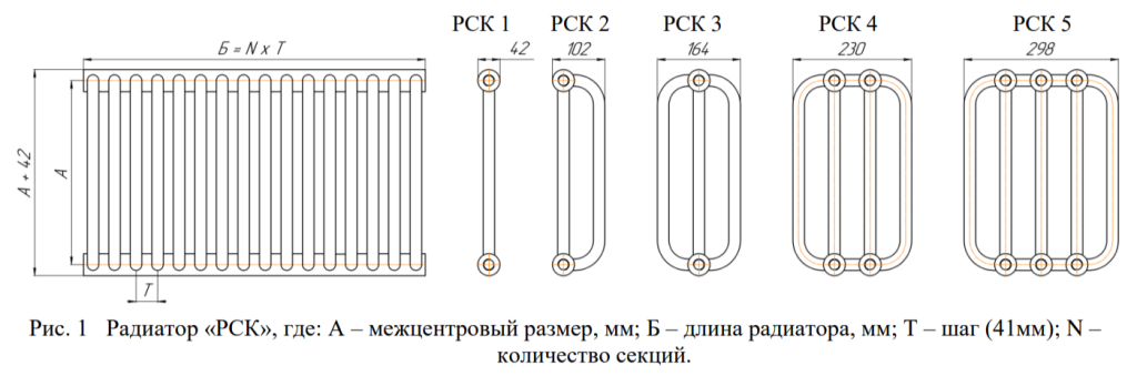 2.1. Основные габариты и параметры радиаторов представлены на рисунке 1 и в таблице технических характеристик.