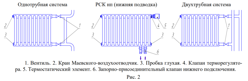 Нижнее подключение для двухтрубных систем